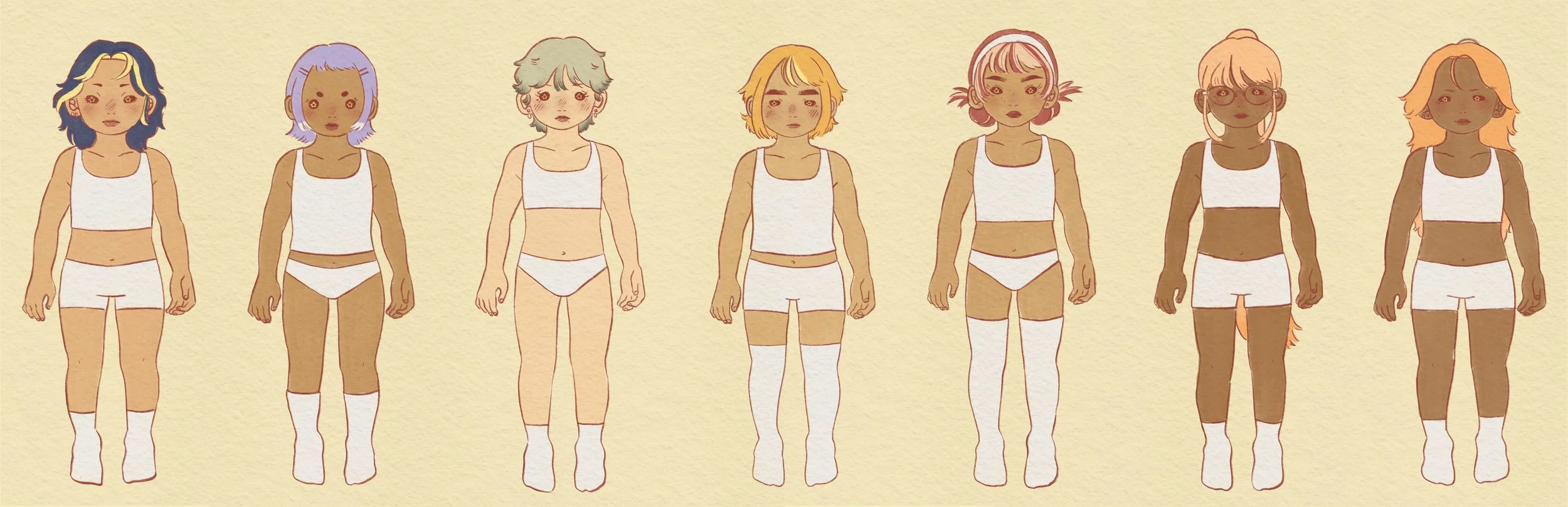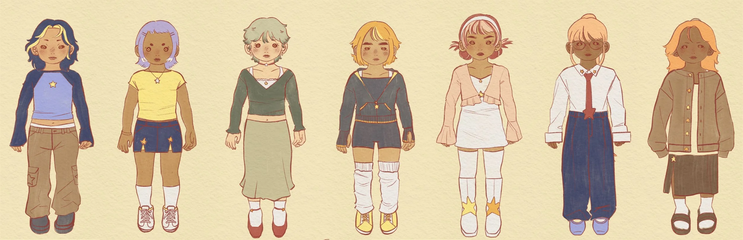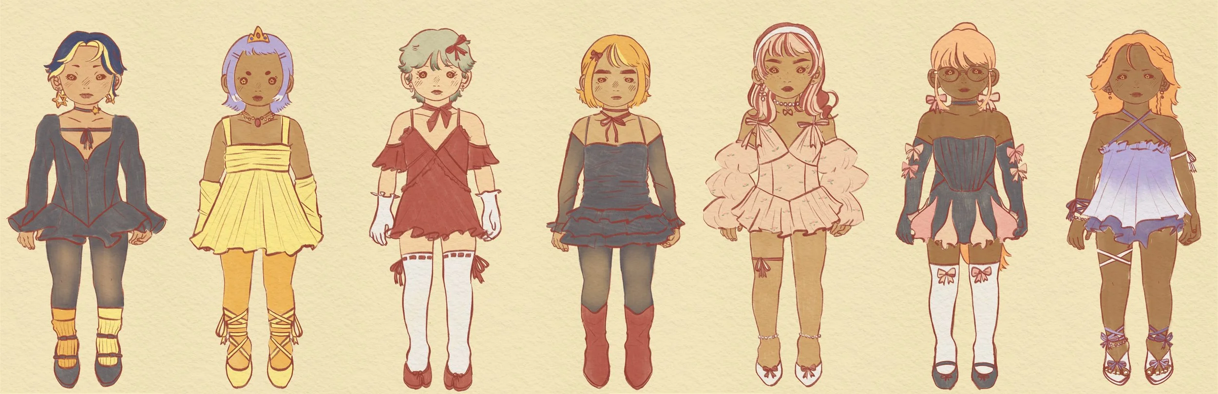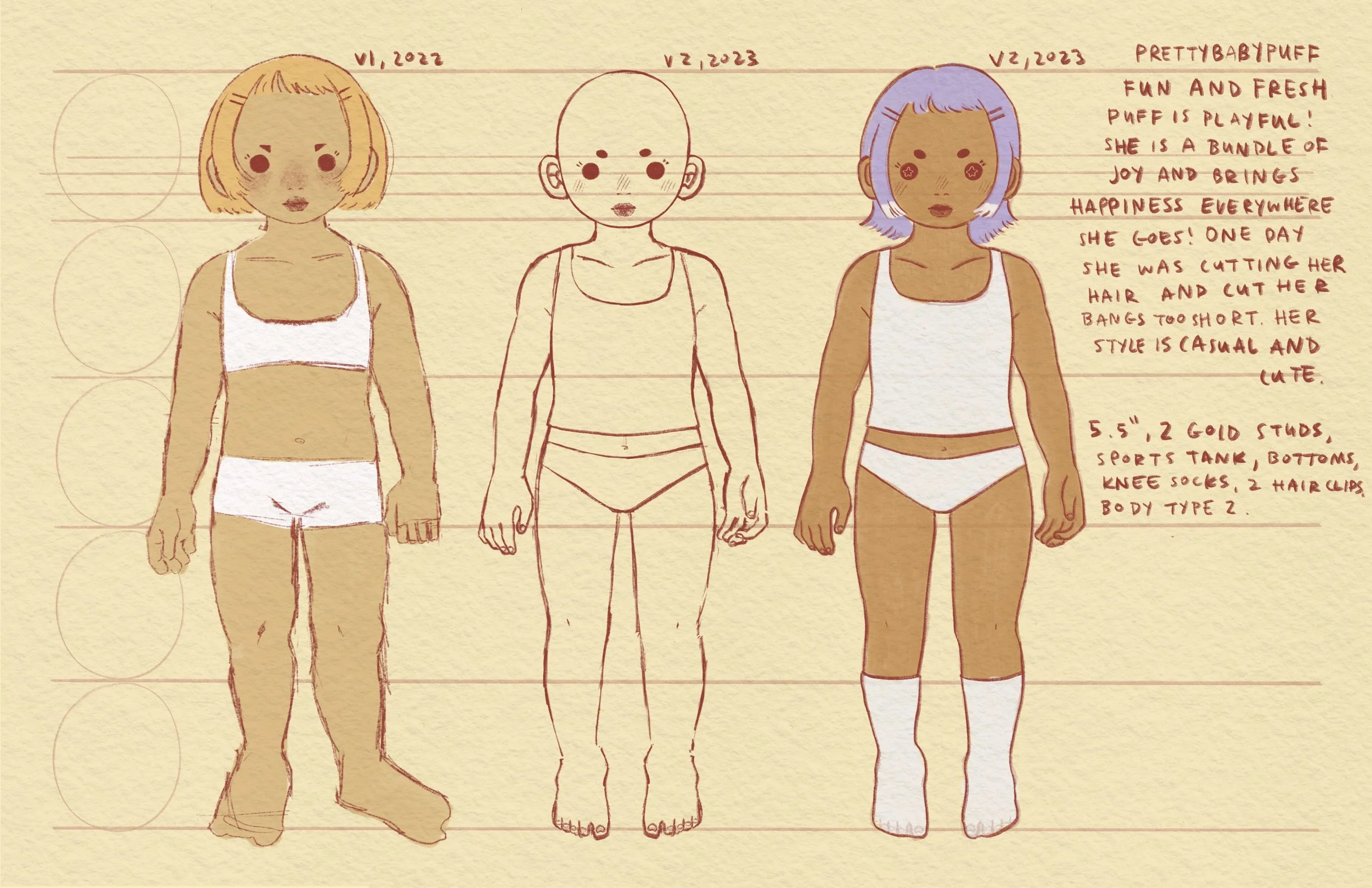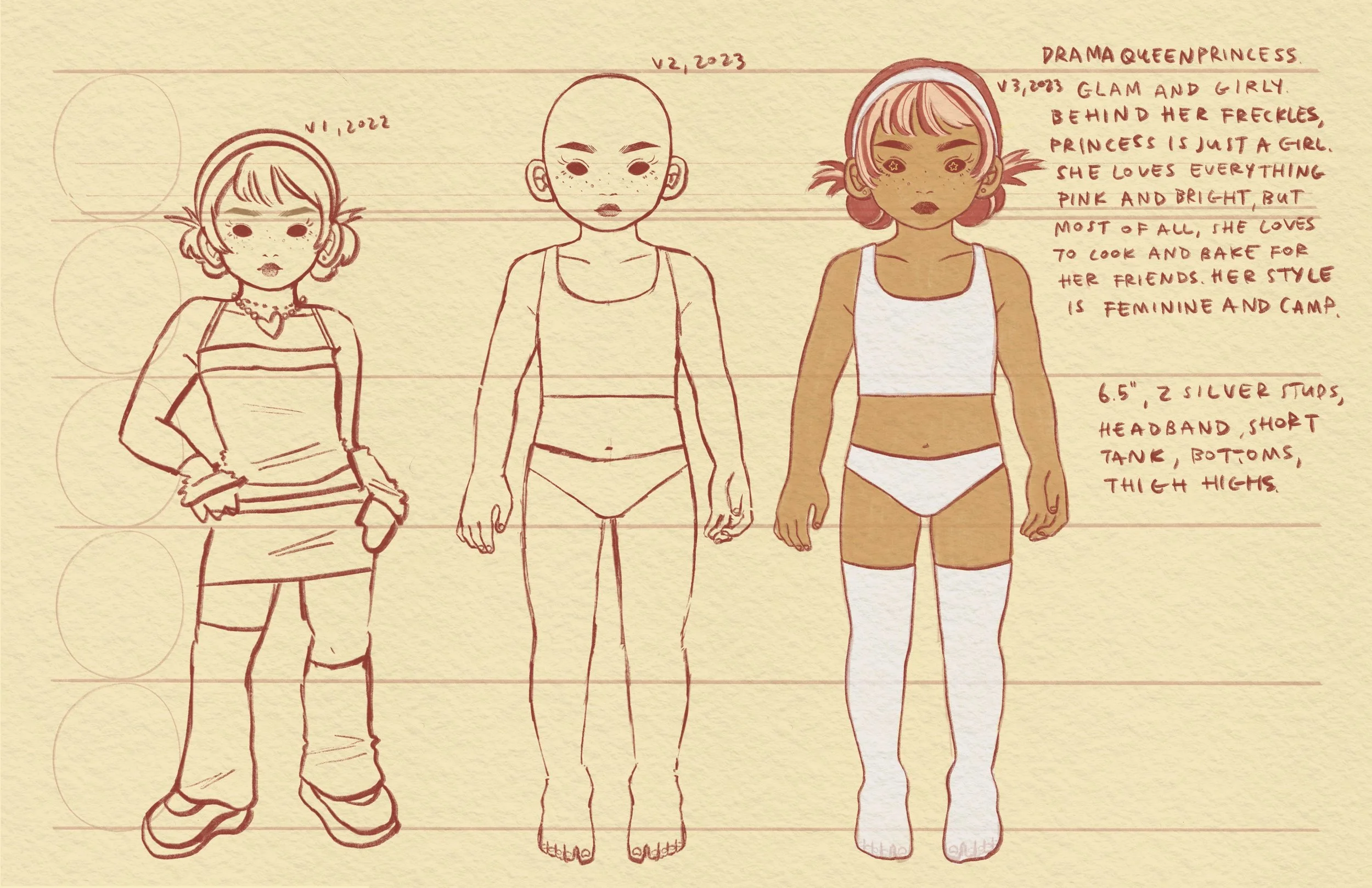 All of the doll’s designs were redesigned original characters. Each comes with undergarments, socks, and jewelery.